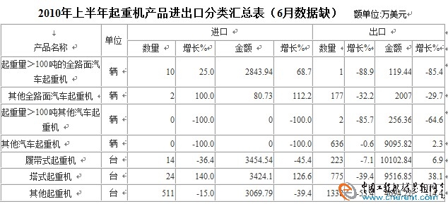 四、2010年上半年中國起重機進出口情況分析